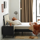 The Kuro Rattan Bed Frame features intricate detailing and craftsmanship through its black solid oak wood frame and finely crafted rattan headboard that exudes a beautiful woven look.