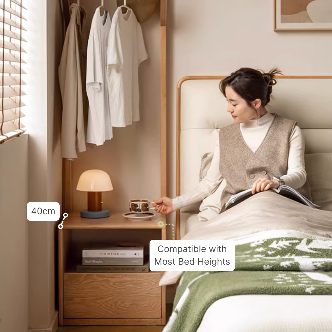 Built-In Bedside Table: Extra surface for bags, folded items, or daily essentials without needing separate furniture.