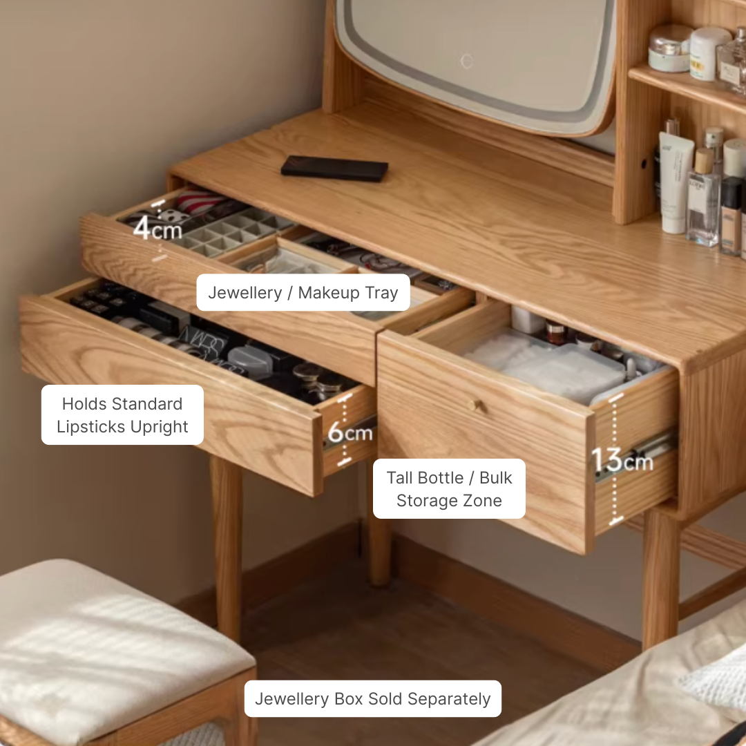 A dressing table is more than just a piece of furniture; it is your personal space to prepare for the world. We understand that homes in Singapore often require smart use of space. That is why our dressing tables are designed with this in mind. They offer dedicated spots for your makeup, jewelry, and accessories, helping you stay organized.