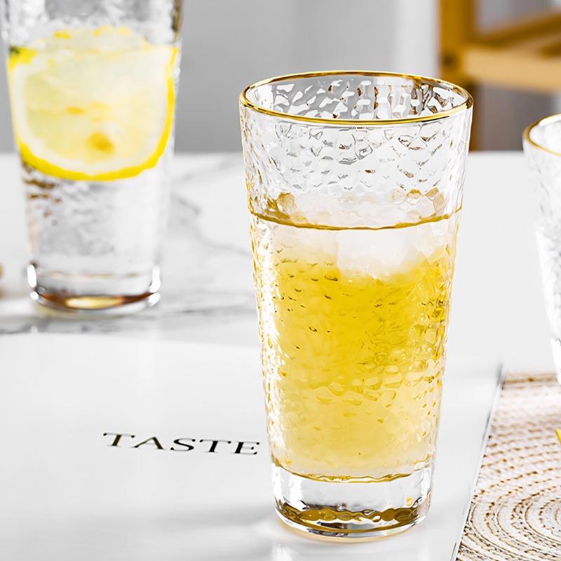 Elevate your sipping experience with the 400ml Gold Rim Hammered Glass where luxury meets functionality. Crafted with lead-free glass, adorned with sleek textures, and finished with a delicate gold rim, this cup adds a touch of sophistication to any table setting, perfect for home, office, or special occasions.