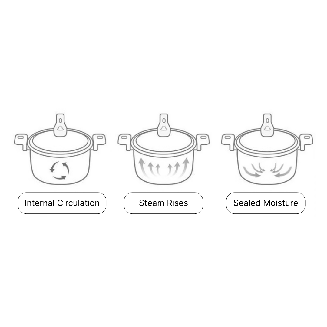 Micro Pressure, Maximum Comfort: Enjoy gentler pressure cooking with no loud hissing, no bulky valves, just quietly tender meals with sealed moisture.