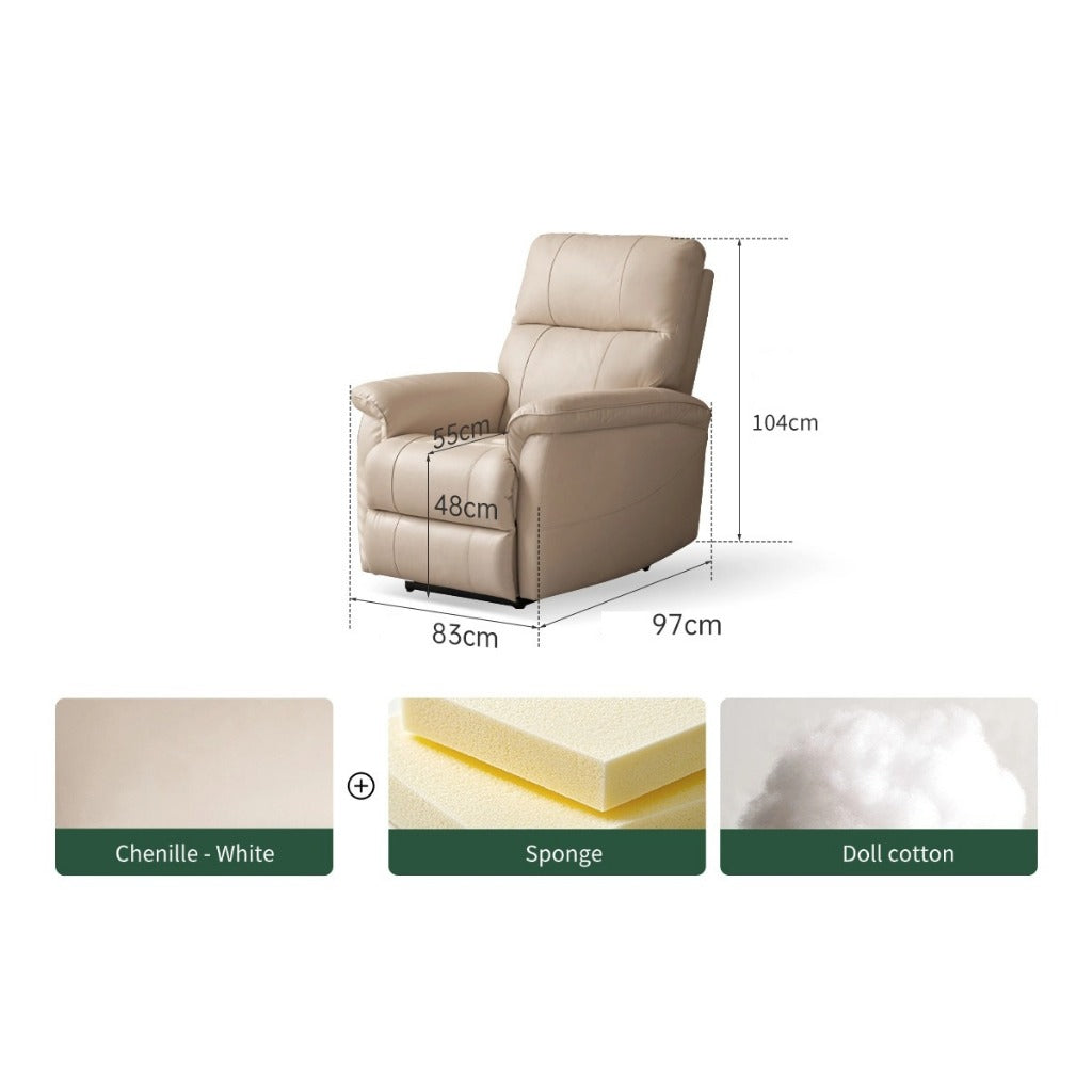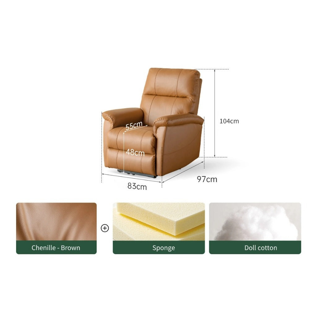 The Amore Auto Recliner Armchair offers premium comfort and effortless relaxation, crafted with top-grain leather and advanced cushioning for lasting durability. Its ergonomic design and auto-reclining function make it a perfect addition to any living space.