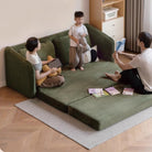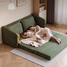 The Yoshi Sofa Bed blends Japanese-inspired minimalism with modern versatility. Crafted with a solid pine and multi-layer wood frame, it’s upholstered in rainforest green fabric for a soft, textured feel. Designed for compact living, it transforms easily from a sofa to a bed, making it ideal for small apartments or guest rooms.
