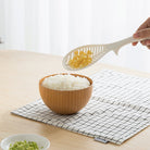 Made of PP material, this leaf-shaped rice paddle can be placed upright or lying when not in use, making it easier to store. Doubles up as a multi-functional spoon to filter soup ingredients too.