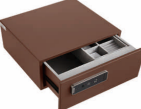 This drawer-style safe combines a sleek, minimalist design with a refined brown finish that radiates quality. Thoughtfully divided with an internal partition, it keeps small items neatly organized and easily accessible.